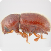 The species uses the haplodiploid sex-determination system: females are diploid while males are haploid; unmated females produce male offspring by parthenogenesis while mated females produce both male and female offspring. Both in beetles from collected date stones and in laboratory cultures, about 85–93% of the adults are females.[2]