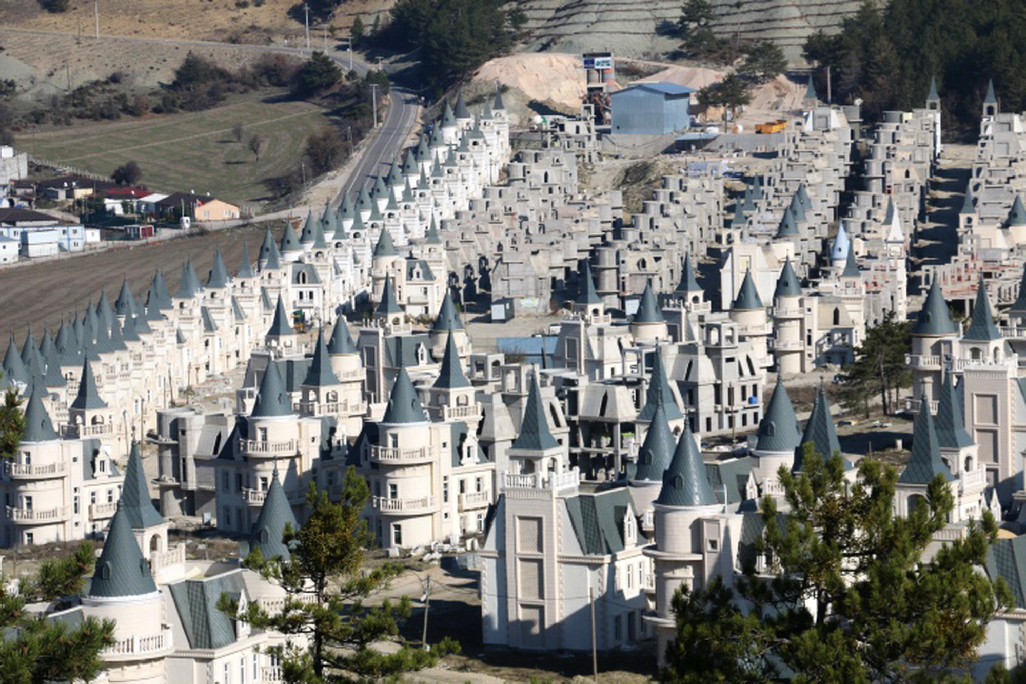 Поселок назвали Бурдж Аль Бабас (понятно, на каких именно покупателей они рассчитаны), он расположен посреди живописных гор провинции Болу и там планировалось возвести аж 700 замков во французском стиле для богатых арабов Катара, Бахрейна, Кувейта, Саудовской Аравии и Объединенных Арабских Эмиратов. Ну, точнее, конечно, это были не замки, а очень нелепо выглядящие виллы в образе замков общей площадью 225 квадратных метров, стоимостью несколько сотен тысяч евро.