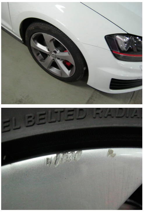 Как и в любом другом крупном аэропорту, приемку осуществляет третья фирма. При осмотре Гольфа обнаружилась вот такая царапина на диске.