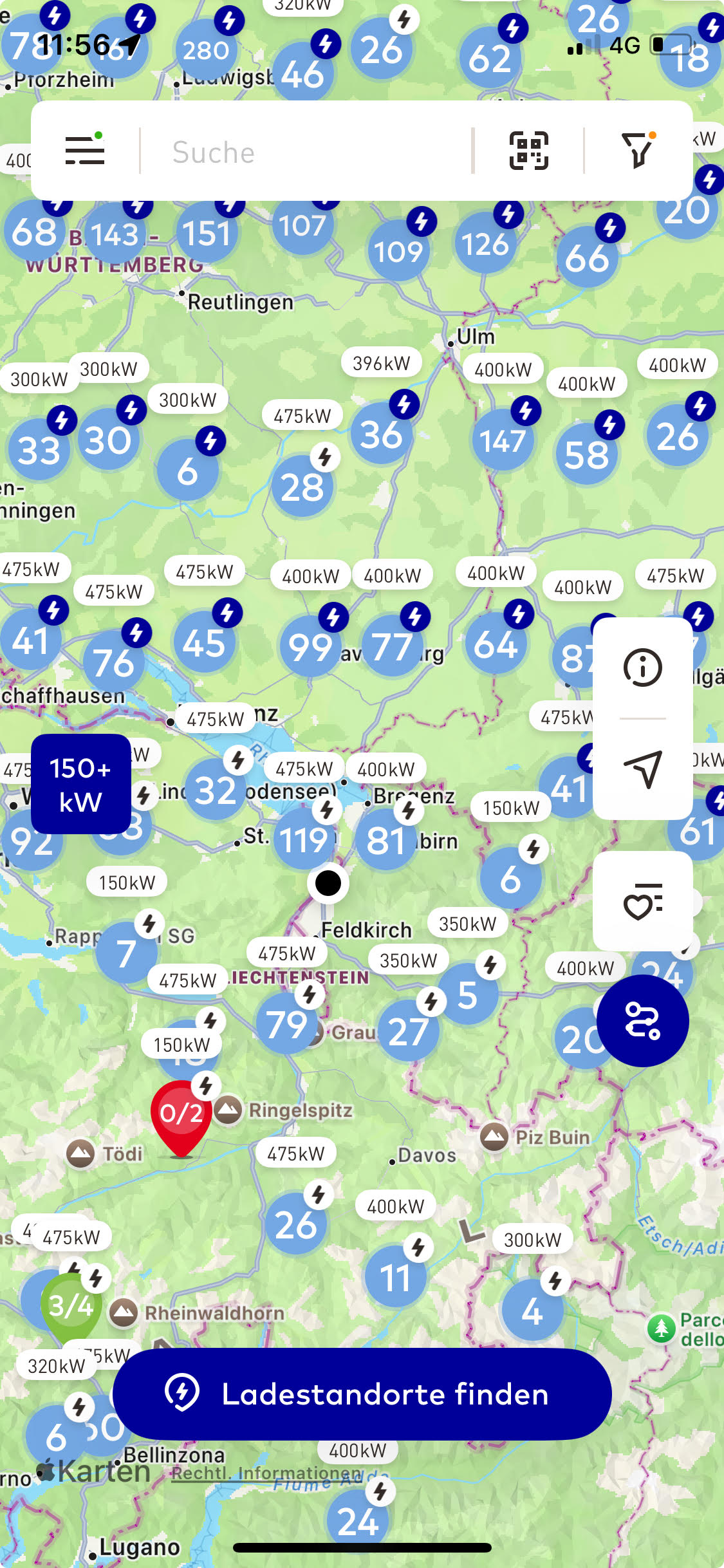 для сравнения - количество зарядок 150 + кВт в 100 - 300 км от дома :