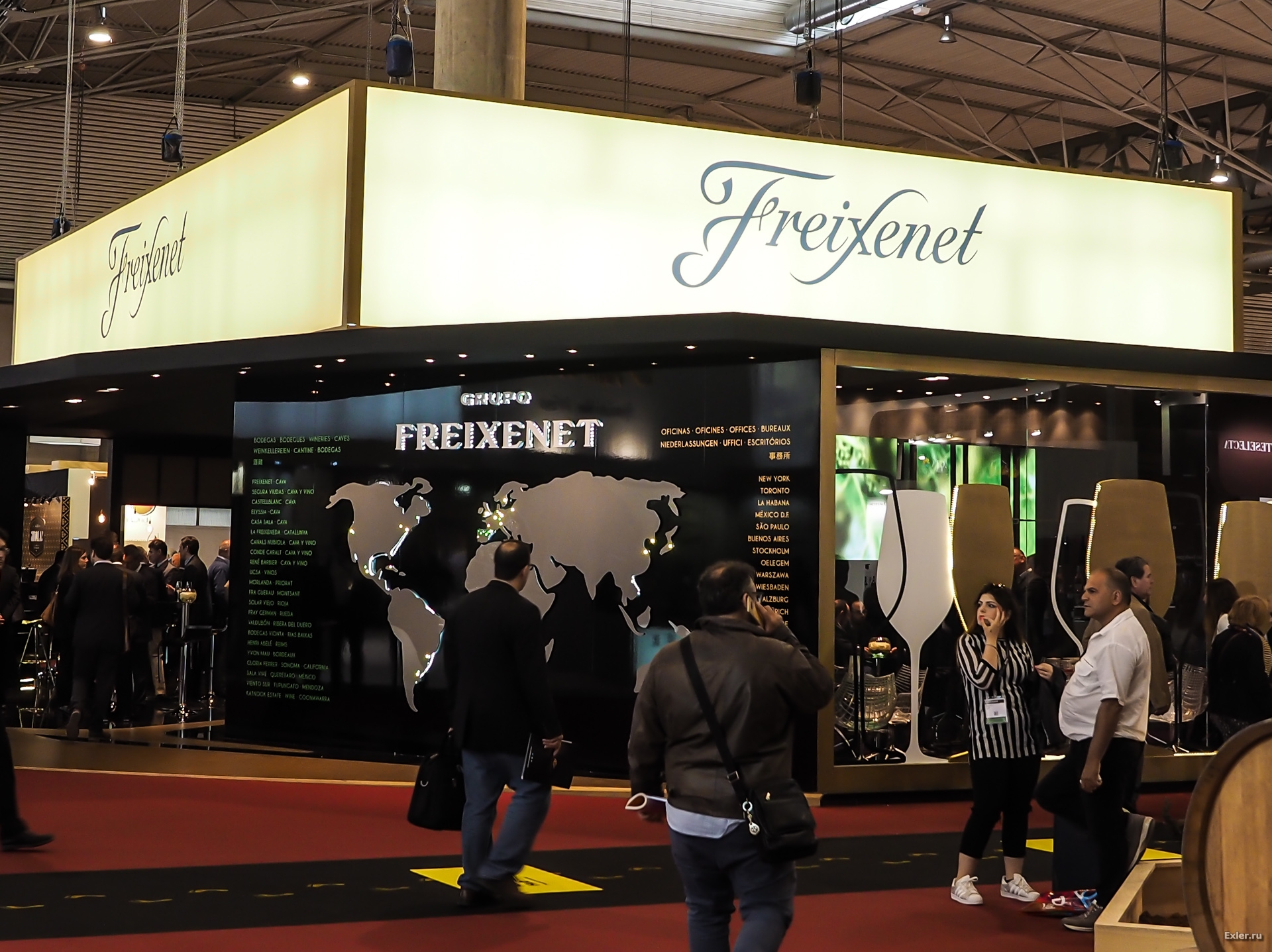 Стенд "Фрешенет груп" - это крупнейший в мире (не только в Испании) производитель игристого вина (в Испании оно называется "кава"). Виноград для кавы, выпускаемой под этой маркой, выращивается в регионе Пенедес.