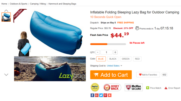 Как надо правильно делать бизнес? Находим в каком-нибудь китайском магазине не слишком известную, но вполне удобную штуку. Например, переносную надувную лежанку за 44 буказоида - вот такую.