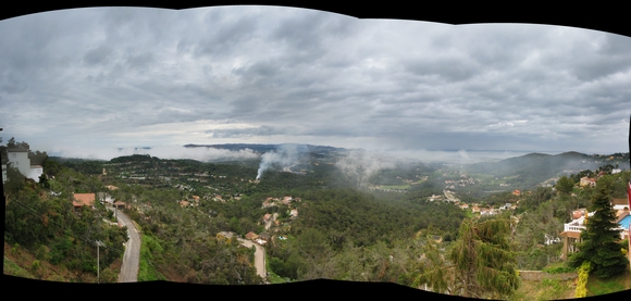Я все это снял, скопом сунул программе - она тут же сделала панораму, причем еще и выровняла экспозицию - я снимал на автомате, так что яркость кадров с небом заметно отличалась от яркости кадров с долиной.