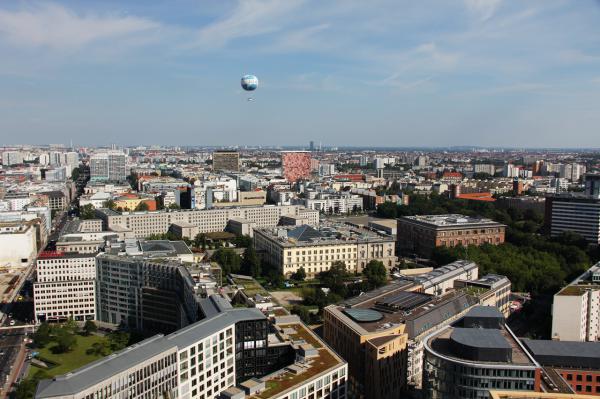 Воздушный шар - развлечение для туристов. Пара башен под ним - темная и такая красноватая - это, насколько я помню, здания издательства "Аксель-Шпрингер".