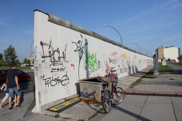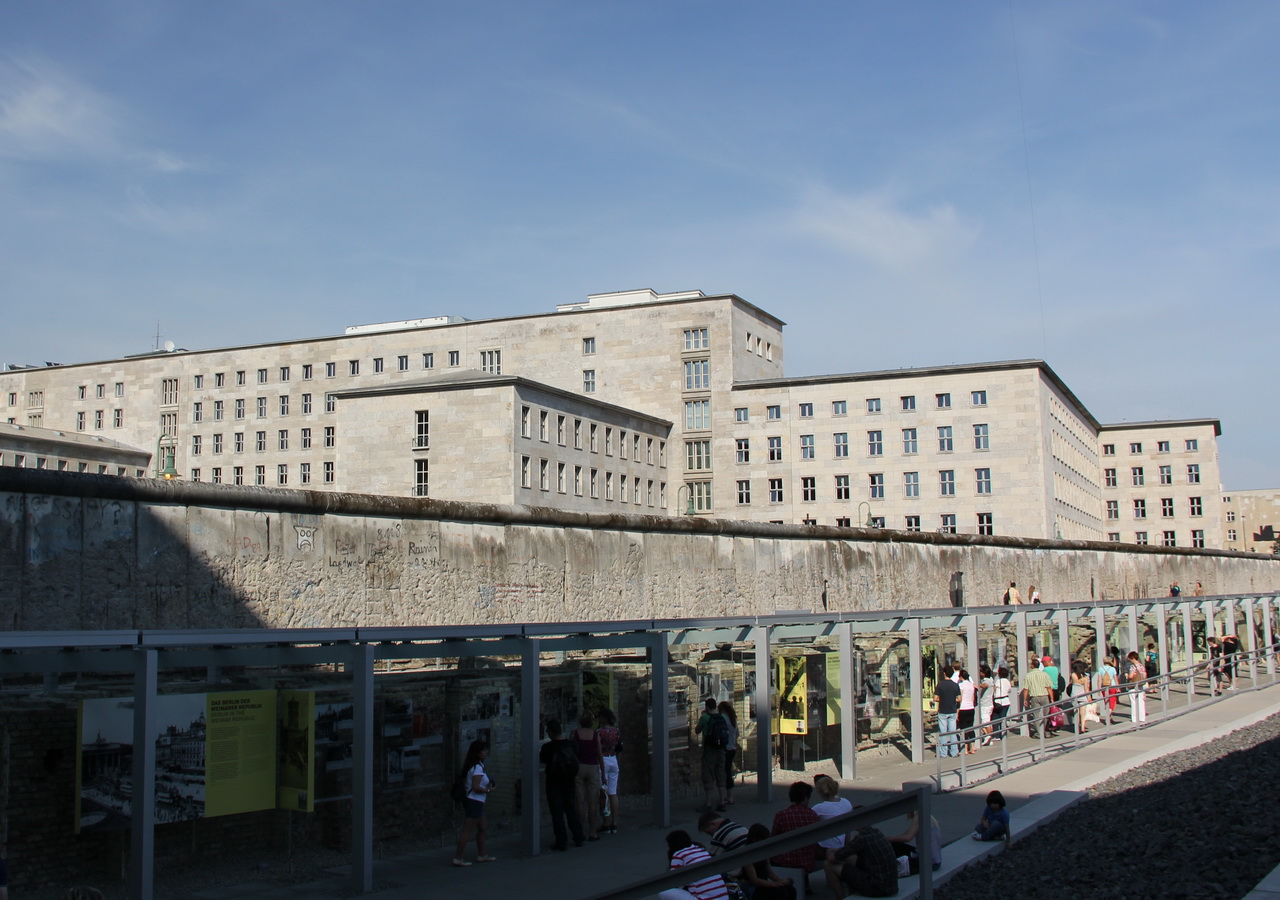 Та самая берлинская стена. На месте, где были пыточные Гестапо. Мрачные здания напротив - из тех же гитлеровских времен. Аж до сих пор пробирает, когда на это смотришь.