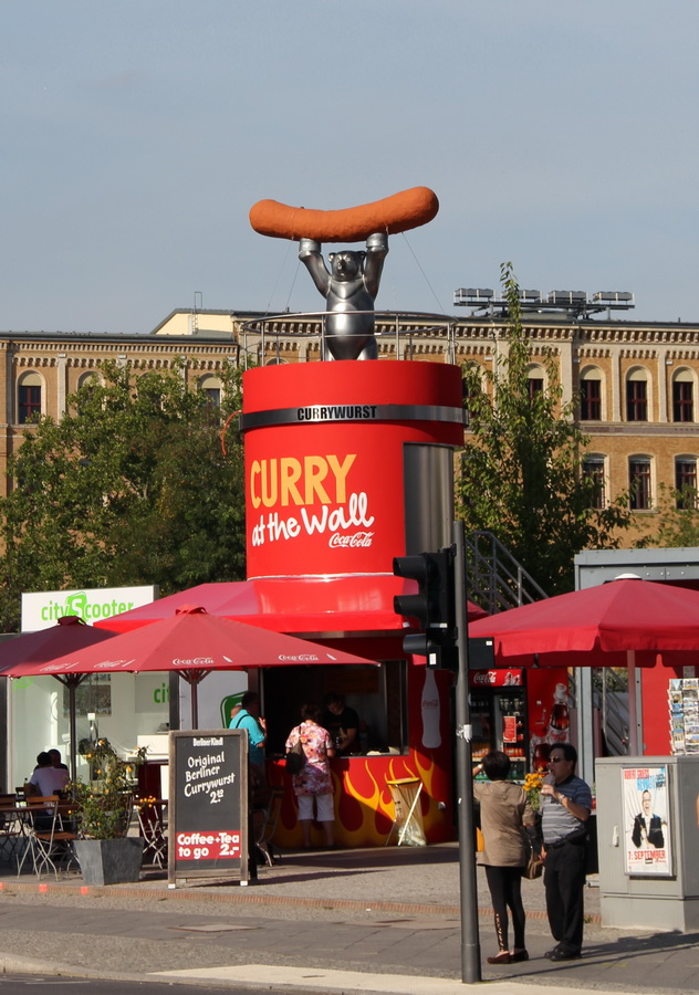 А это памятник фирменному берлинскому блюду - сосиске с приправой карри (карривюрст). Гадость, кстати, редкостная - впрочем, я просто не люблю карри. Хотя сама сосиска без карри - вполне нормальная.