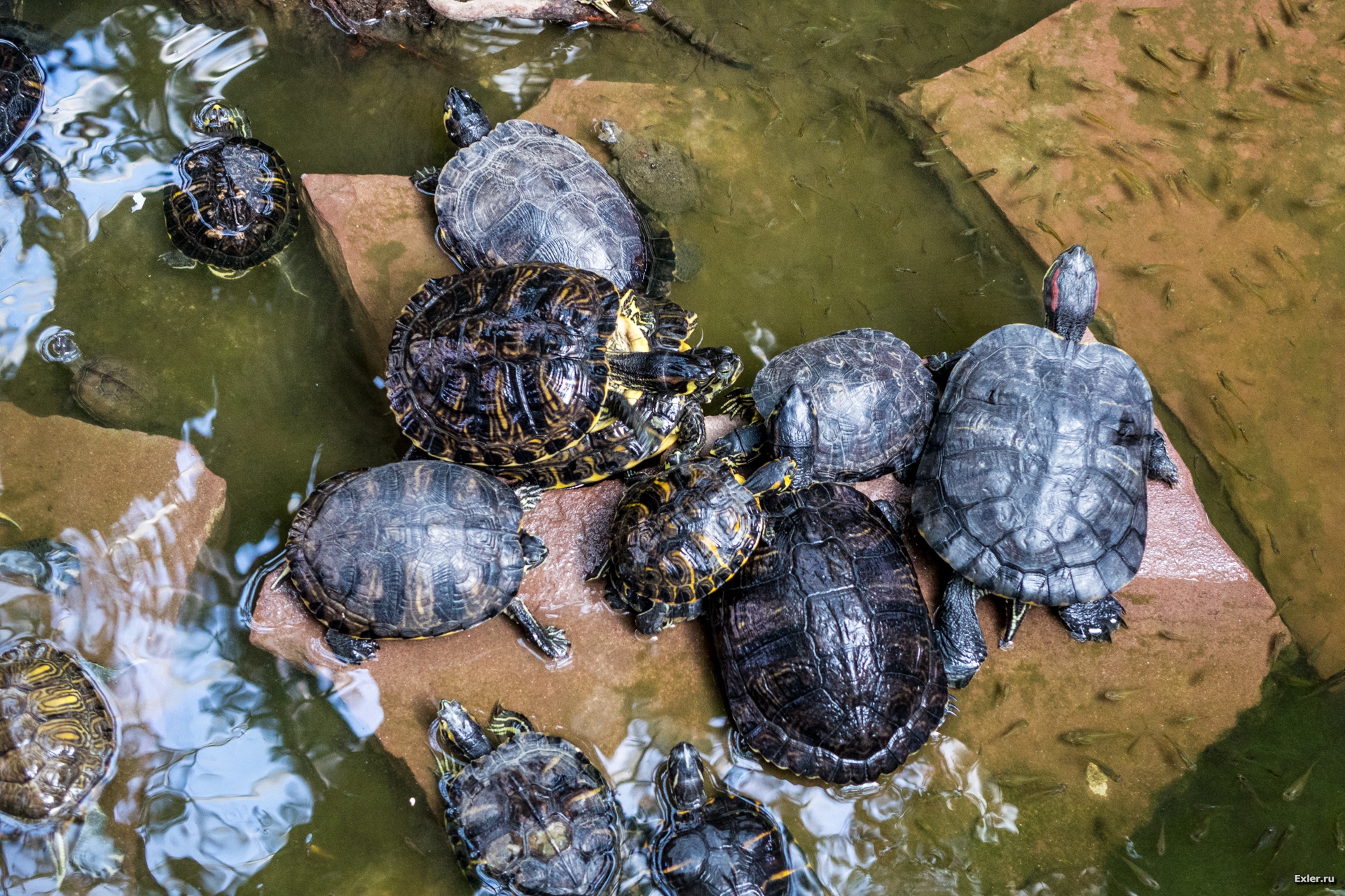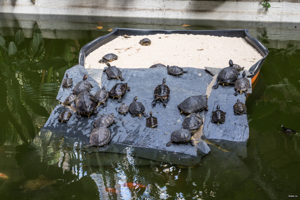 В саду много-много диких черепашек.