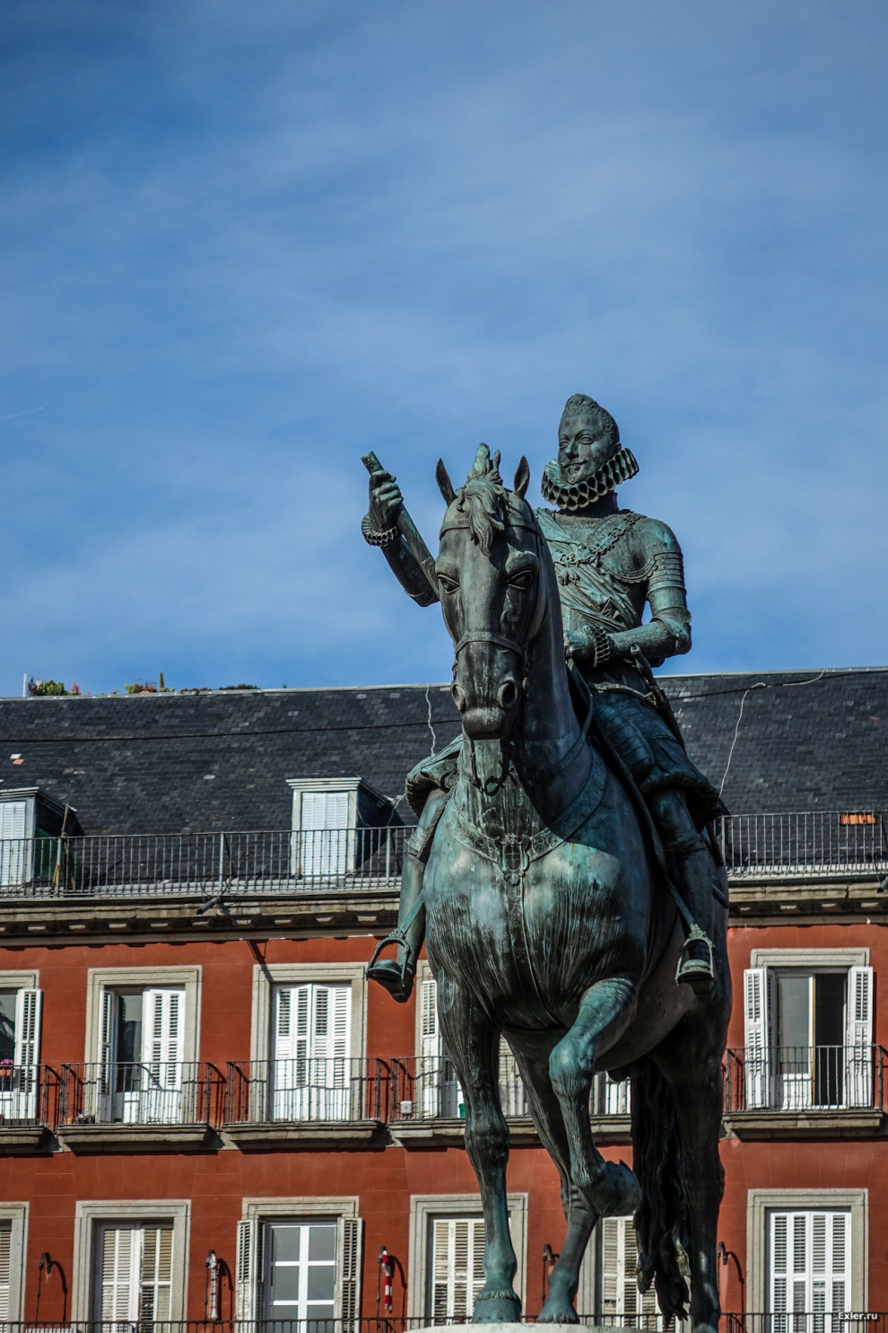 В центре находится памятник королю Филиппу III, во время правления которого площадь и была создана. И, разумеется, у этого памятника обычно все и встречаются. Мадридцы так и говорят: "Встретимся у Филипп".