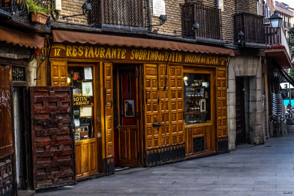 Самый старый ресторан Европы - открыт в 1725 году и с того момента вообще не закрывался. Что интересно, в каждом европейском городе вам обязательно покажут "самый старый ресторан Европы", "самую старую рюмочную Европы" и "самую старую общественную столовую Европы". Мадрид тут не стал исключением.