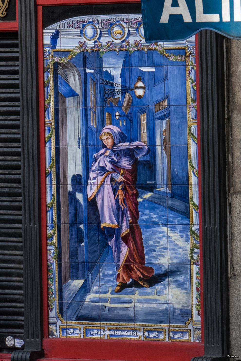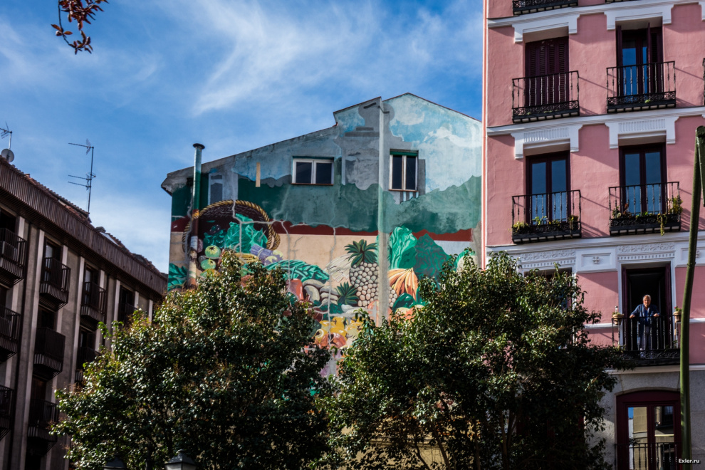 Известная особенность Мадрида - на стенах домов и магазинчиков нередко встречаются вот такие картины, выложенные из плитки.