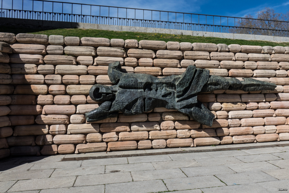 А это мы уже пришли к обзорной площадке с видом на королевский дворец. Это памятник Не Доплывшему Пловцу. Куда он плыл и почему не доплыл - сокрыто в глубине веков.