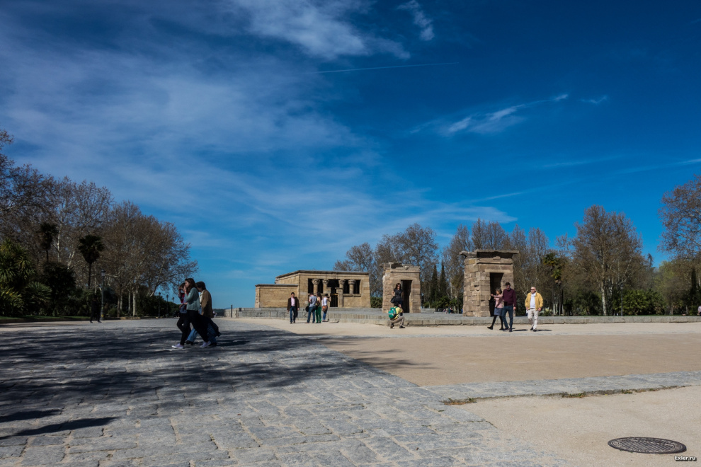 На площадке установлен один из египетских храмов: когда в Египте строили Ассуанскую плотину, многие старые храмы были затоплены. Их помогали поднимать специалисты разных стран и в знак благодарности Египет многим из них дарил те храмы, которые специалисты подняли. Вот один из таких храмов.