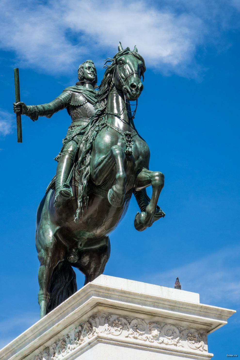 Скульптура короля Филиппа IV. Обратите внимание на то, что скульптура опирается только на задние ноги лошади. Расчет центра тяжести для этой скульптуры делал Галилео Галилей.