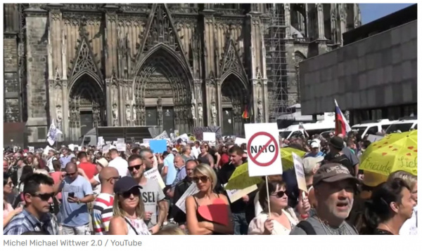 В ответ на улицы Кельна вышли те, кто против смягчения политики по отношению к России. Эти акции также собрали несколько сотен человек.Добавлю от себя, что не вижу в этом ничего удивительного: и через полгода войны в Германии в русскоязычном информпространстве доминирует кремлевская пропаганда. Достаточно открыть Гугл ( не Яндекс, Гугл) и увидеть его рекомендации новостей, чтоб ощутить себя в России. Риа Новости, Ура. ру, МК-ньюс и Первый Канал занимают большинство лидирующих позиций в новостях Гугла в Германии. А других новостей на русском в массовом сегменте практически нет. Добавим к этому «русский телевизор» в 200-300 тысячах домов и квартир жителей Германии ( он никуда не делся и не погас) - и ждем осенью таких демонстраций на площадях всех городов страны. (Отсюда.)