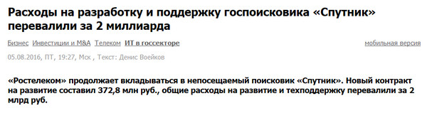 Но в Спутник будут упорно лить бабло, Гугл будут душить, а Яндекс менять. Проекты по измению русла сибирских рек.