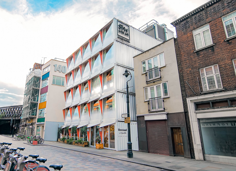 А вот лондонский Stow-Away Hotel. Там, насколько я понял, здание построено из таких контейнеров.