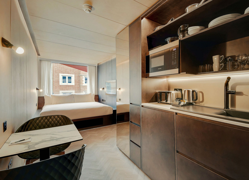 Тоже от обычного гостиничного номера ничем не отличается, причем тут даже кухонька есть.