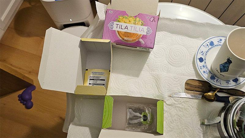 Так вот, вчера я подошел к последним пакетикам в коробочках, и с удивлением и некоторым шоком обнаружил, что в коробочке с липой (tila на испанском) - пусто. Мята и ромашка - есть, а липы - нету. Но такого не может быть, я всегда завариваю три пакетика, ни разу я отдельно липу не заваривал. То есть оказалось, что в коробочке с липой - только 19 пакетиков, а не 20! Но это же безобразие полнейшее!