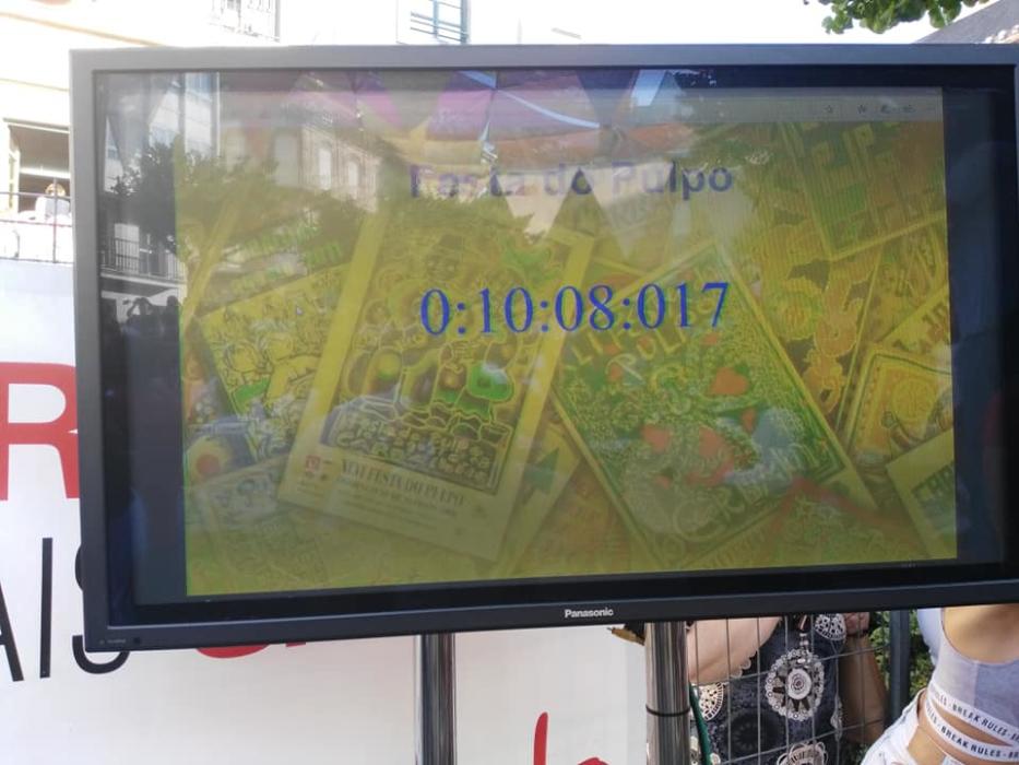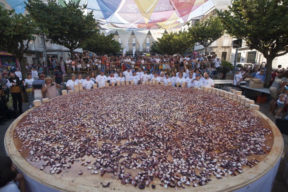 Из полученных кусочков потом было приготовлено примерно 1200 порций осьминога по-галисийски. После этого все присутствующие обожрались шоколадом: в качестве десерта им подали здание ратуши города в натуральную величину, сделанное Хосе Мануэлем де ла Иглесия из Королевской кондитерской фабрики из 180 килограммов черного и белого шоколада.