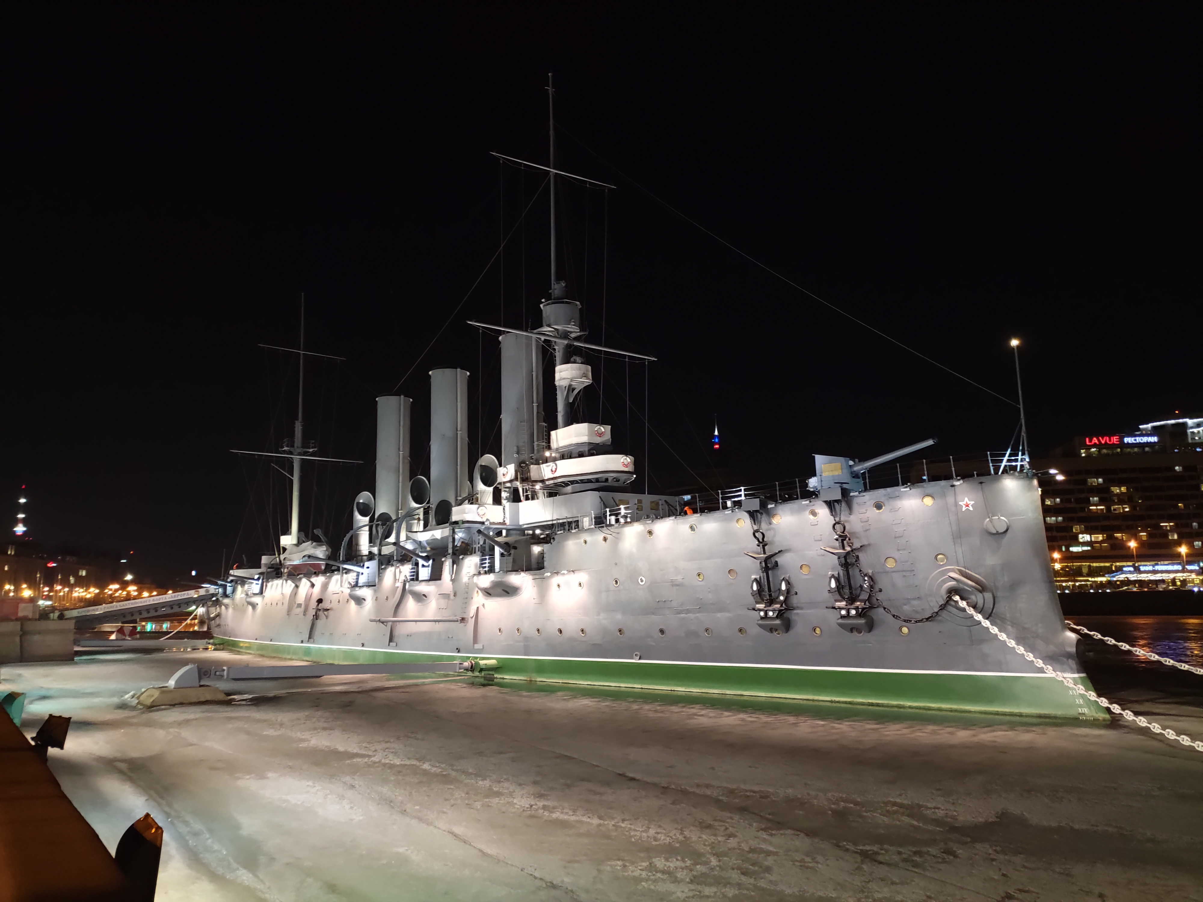 один на набережной. Охранник на корабле все за мной смотрит куда б не пошел. Включил ему "Что тебе снится, крейсер Аврора" с телефона на громкую, помахал. Он отвернулся, кажется, с отвращением.