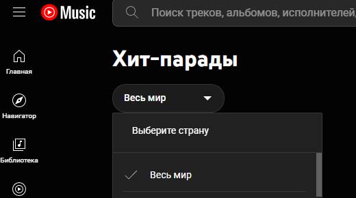 В разделе Музыка в YouTube можно выбрать раздел "Топ чартов"