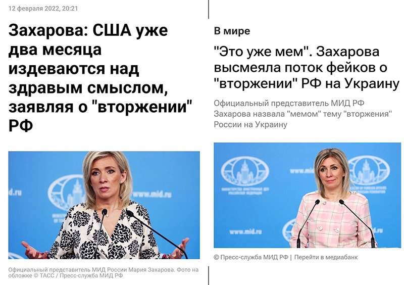 Захарова тоже очень возмущалась этими "фейками" и "мемами".