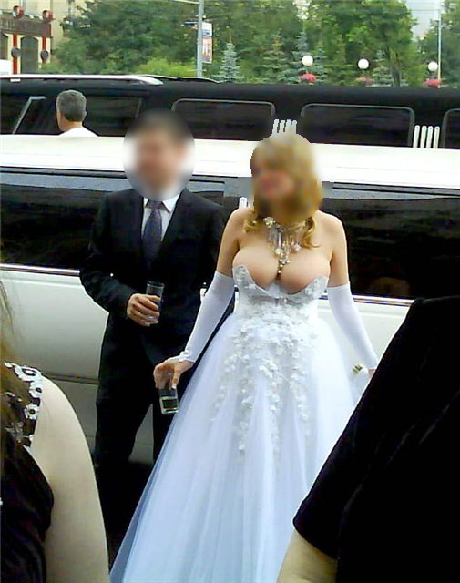 А вообще интересно все таки. Судя по платью и размеру богатства невесты, оно (богатство) должно вываливатья буквально при малейшем налоне влево или вправо.