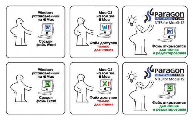 (От Экслера. Я решение проблемы, о которой говорится чуть ниже, искал давно: у моей жены Mac Air, и я там немало намучился с совместимостью, а точнее с несовместимостью файловых систем OS X и Windows. Так вот, с помощью этих драйверов проблема, как оказалось, решается полностью - я в этом убедился. Но о своем опыте я расскажу после нижеследующего текста.)