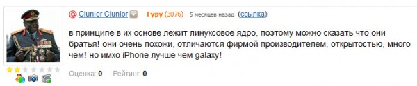 Нормальный обывательский ответ. Ну не оба на linux, для некоторых возможно все что не windows уже linux. Главное то он написал - "много чем". Ну и понятно что для обывателя лучше iphone - он же такая няшка.