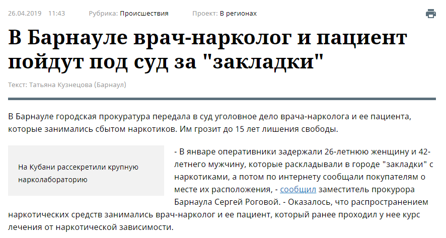 Всё-таки наказание за распространение наркотиков у нас слишком мягкое. Пожизненная работа в каменоломнях где-нибудь за полярным кругом - вот это было бы самое то...