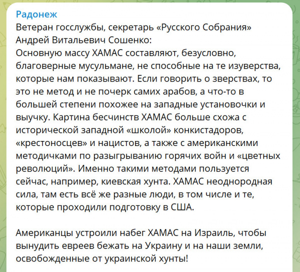Попалась тут ссылка на ТГ "Радонеж", который "Духовное сопротивление. Русский мiр". Начал читать, а там такая веселуха - это что-то!