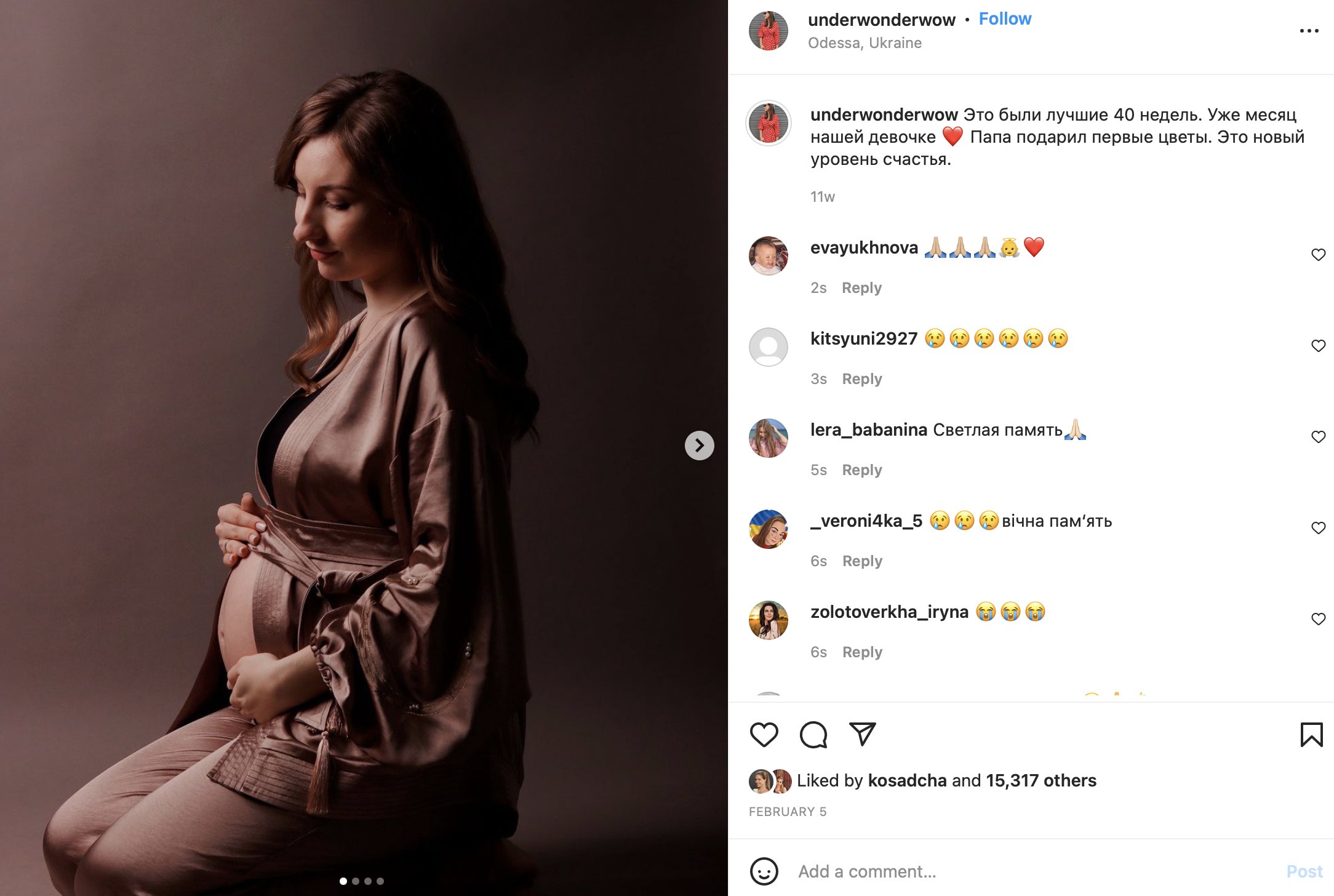 Вот такие у нас пасхальные дни, потрясающе. Семь ракет сегодня прилетело в Одессу, семь ракет. Две мы сбили. <…> В многоэтажный дом попала ракета. Восемь людей — на сейчас, вот прямо в этот момент — восемь людей скончалось, 18 или 20 раненых. <…> Ребенка убили трехмесячного. Война началась, когда этому ребенку месяц был. Вы представляете? Что это вообще происходит? Подонки вонючие. Как их еще назвать? Других нет слов. Просто подонки. <…>