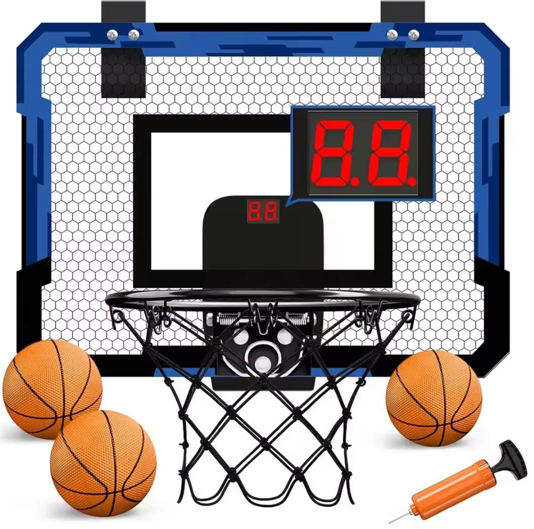 Продолжаю детско-подарочную тему. Своему среднему заказала такой набор юного баскетболиста. Все значительно меньше настоящего, как раз для квартирного использования - мячики сантиметров по 15, кольцо примерно 25, щиток около 40. Думаю, может понравится не только детям, но и мальчикам постарше. В наборе щиток, табло, корзина, три мяча и насос (очень не очень) к ним, крепление, а ещё всякие винтики - болтики- гаечки- ключики. В общем, все необходимое для установки. А ещё, кольцо складывается, так что не будет занимать много места даже в собранном виде.
