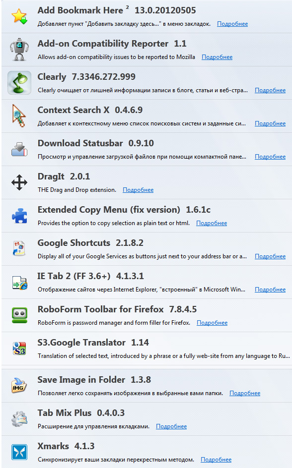В результате у меня получился вот такой список дополнений.