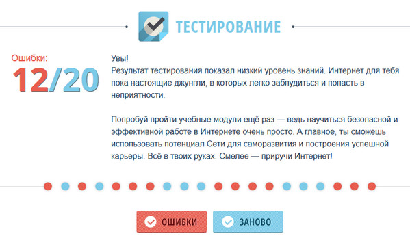 Очевидно, что этот тест - для маструбации самолюбия какого-нибудь идиота-методиста и рекламы какого-то угробищного "Дети онлайн". К реальной безопасности он не имеет ни малейшего отношения.