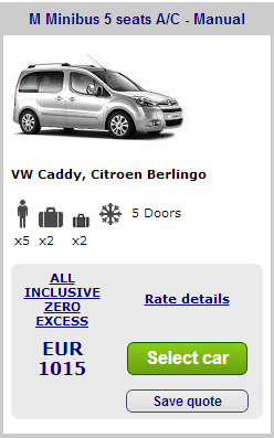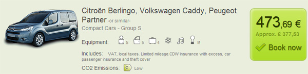 Нормальный такой эконом, да? 1015 евро. В непонятно какой конторе. И непонятно, забронируют ли вообще. Кроме того, называть Citroen Berlingo минибасом - это уже слегка за гранью каких-либо приличий. По этой логике Ford Ka у них должна называться представительским классом.