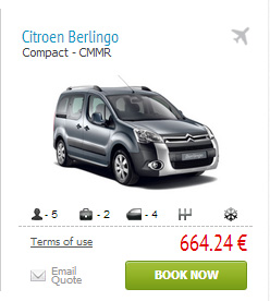 oleg_rod: Алекс, попробуйте аггрегатор http://www.easyterra.com , он сразу показывает цену и прокатную контору. И сразу показывает ваш вариант Берлинго в Голдкаре. Если раньше уже советовали его, прошу прощения за повтор