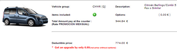 Теперь идем в National Atesa - я там как-то брал машину. Сайт у них неимоверно кривой (каждый раз удивляюсь, как можно было для такой солидной конторы сделать такой кошмар), но выбор обычно неплохой. 945 евро. C франшизой - 774.