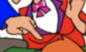 Смысл ускользает. Почему у толстого персонажа борода на веревочке?
