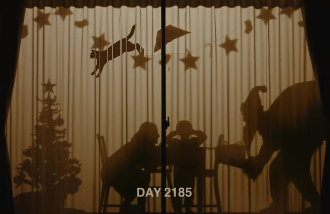 Юный михалков гвоздит на стену портрет хуйла, потом всё вот это с лабрадором и Меркель, с гимнастками, с бабушками-дедушками, и в финале снова вешают хуйло, но