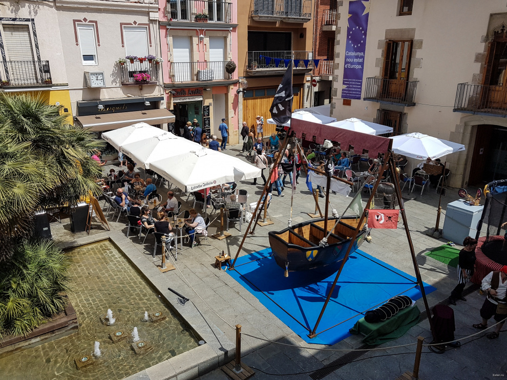 Мы потом всю эту труппу встретили в ресторанчике на берегу, куда пошли обедать. Там классный семейный ресторанчик: его держат два брата и в нем работают сами братья и их родственники. Чисто каталанская кухня, причем очень качественная. Ресторан недешевый (бизнес-ланч в нем стоит 22 евро: для сравнения, в обычных ресторанах бизнес-ланч обычно где-то 11-12 евро), но оно того стоит: и еда отличная, и обслуживание очень хорошее. Меню бизнес-ланча делается только на каталанском (оно меняется каждый день). Но обычное меню есть и на русском с фотографиями блюд.
