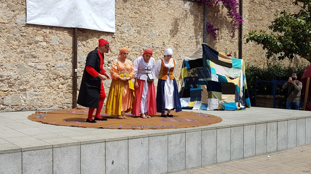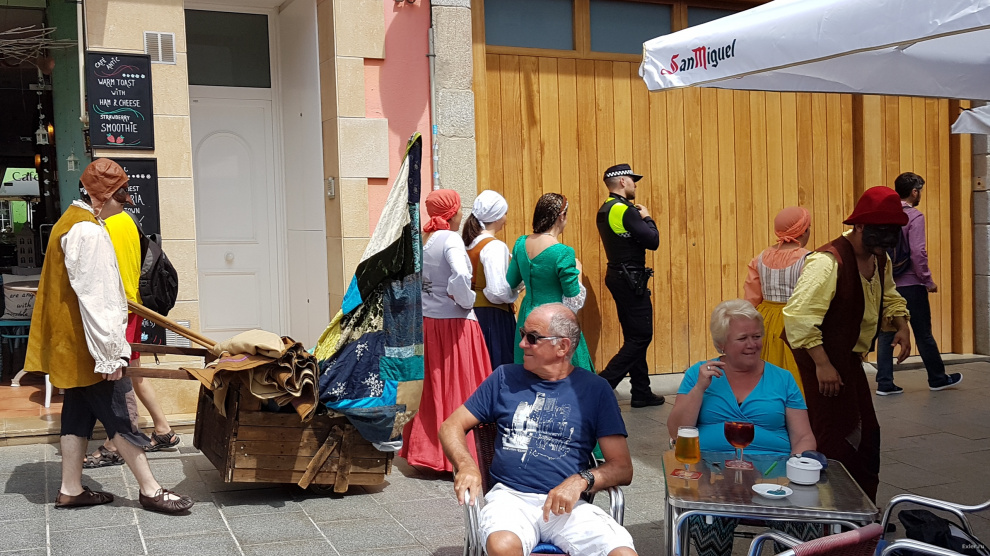 На площади появилась труппа актеров: они будут разыгрывать ренессансную комедию на сцене у церкви.