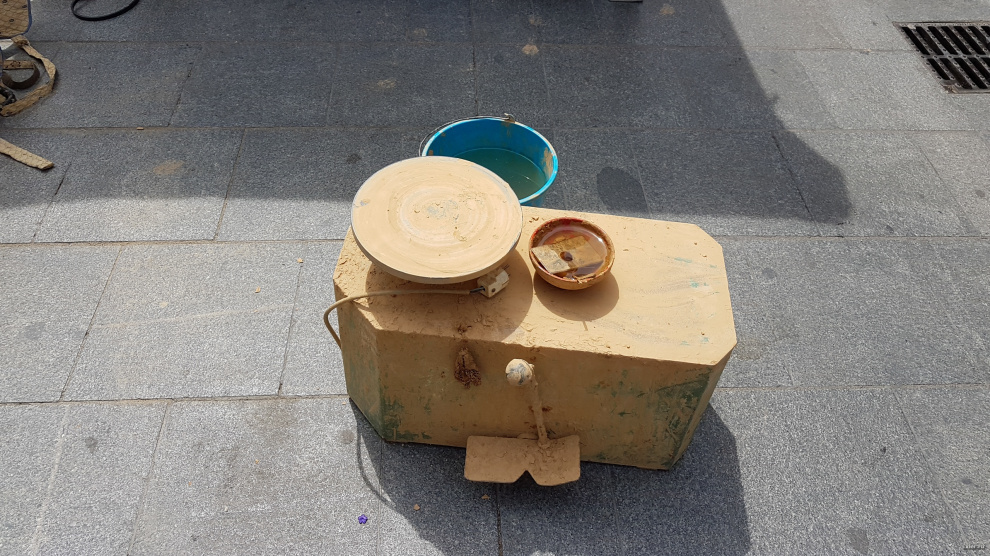 Рядом с палаткой стоит вот такой гончарный круг: несколько раз в день специалист показывает, как из глины делается посуда.
