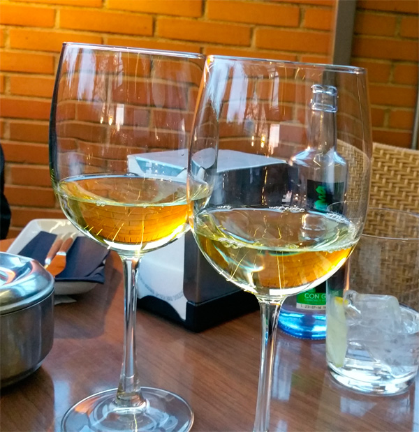 Бокалы принесли не для белого, а для паршивого красного - ну, я тут придираться не стал, потому что, слава богу, что не пивные бокалы.