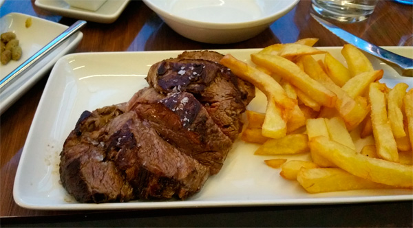 Я у них заказал какое-то там мясо, которое по нашим калейским меркам стоило очень дорого (21 евро), и был уверен, что это будет полный кошмар - ан нет, наговаривать не буду: это был, конечно, не чулетон, но что-то вроде очень даже приличного антрекота из хорошего мяса с нормальной прожаркой.