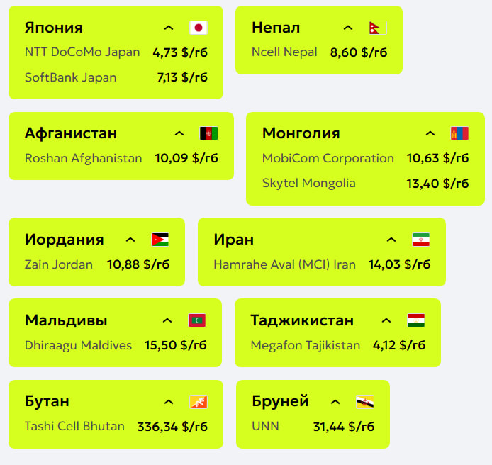 Это цены на eSim для путешественников - но по моим наблюдениям они достаточно хорошо коррелируют со стоимостью интернета в самих этих странах.
