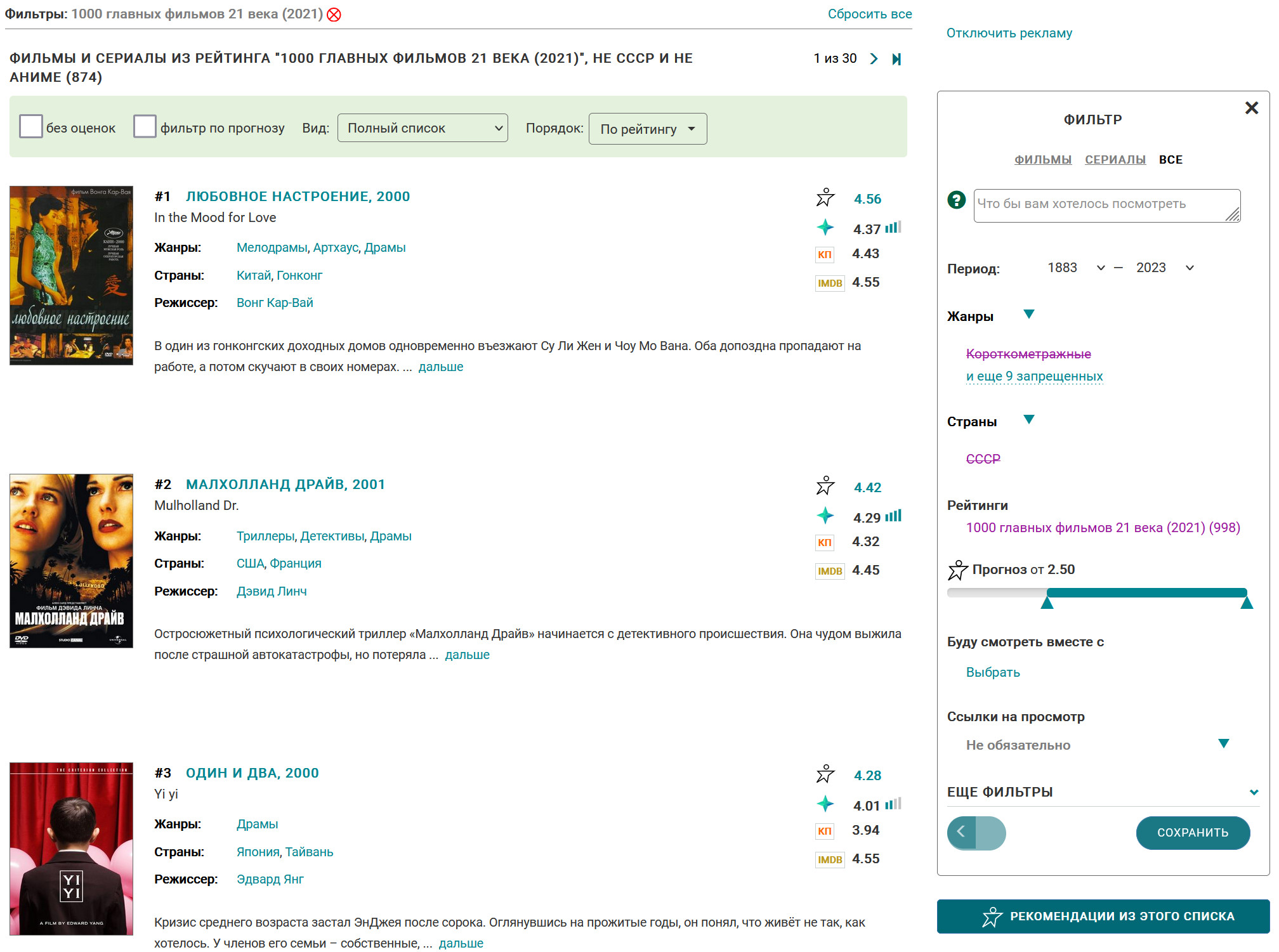 Вот, например, рейтинг "1000 главных фильмов XXI века" из сводного рейтинга TSDP.