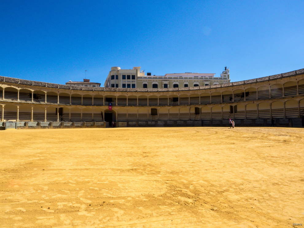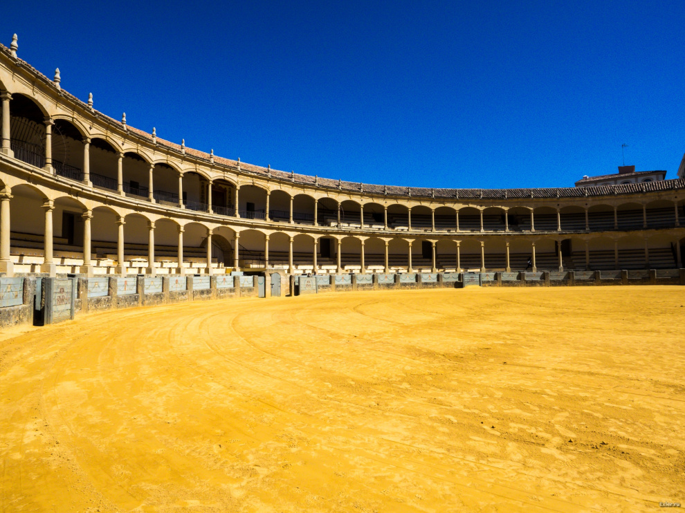 Город Ронда, провинция Малага, расположен на высоте 750 метров над уровнем моря на двух высокогорных плато. Ронда славится роскошными видами, которые открывается с обзорных площадок, уникальным мостом, соединяющим два плато, ну и своей самой большой в Испании ареной для боя быков - Plaza de toros.
