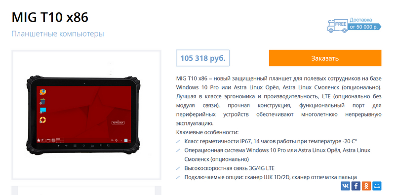 Российский защищённый планшет MIG Т10 на отечественной ОС Astra Linux поступил в продажу.