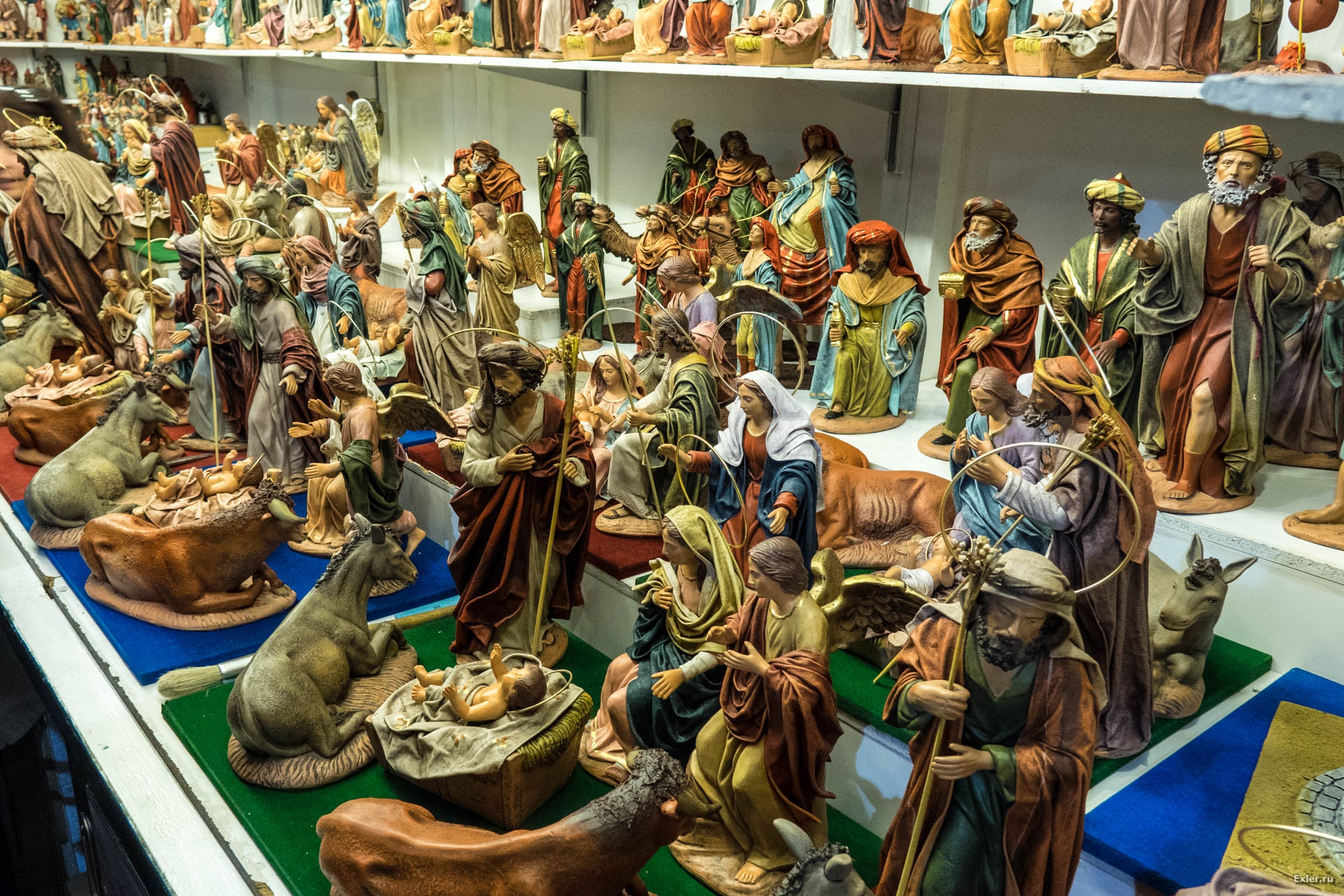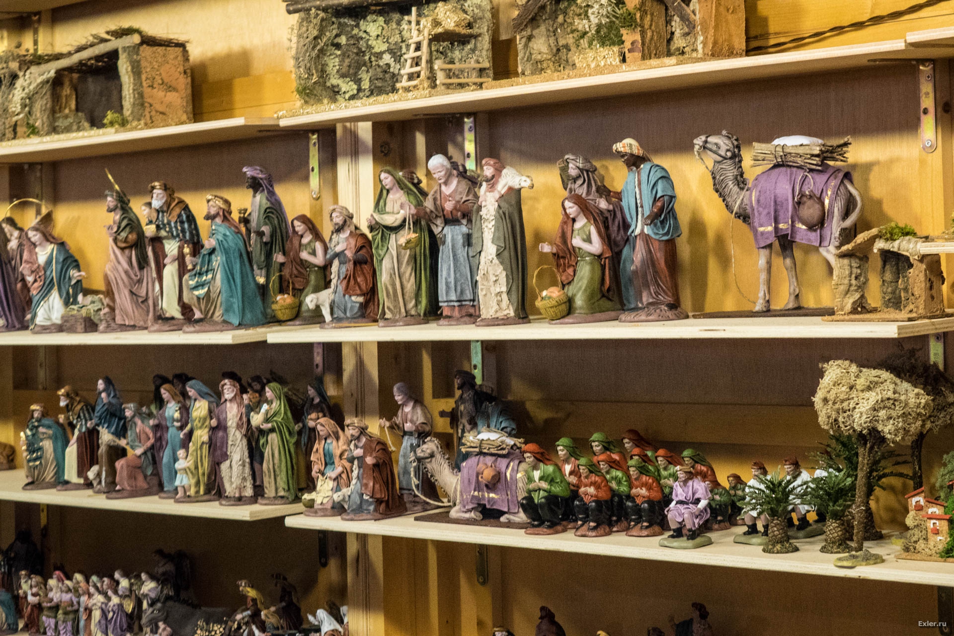 Очень много фигурок для рождественского Вертепа: сцене поклонения трех королей (волхвов) родившемуся Иисусу.